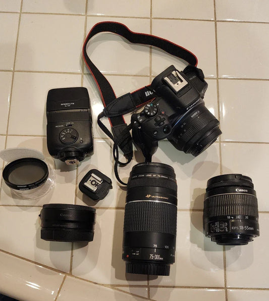 CANON EOS R50 MIRRORLESS, MULTIPLE LENS, LENS ADAPTER, AND ACCESSORIES